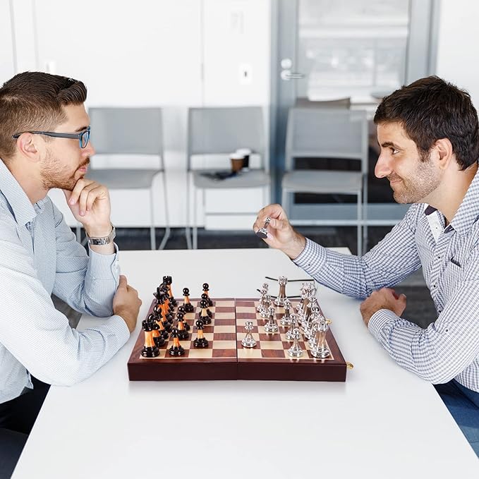 - Unique Design: Featuring chrome and metal Chessmen/chess pieces, with a special shine that lasts for years, plus a gorgeously made brown color chess board, these wooden chess sets for adults will look stunning in your home whether as a decorative centerpiece or as part of your permanent game collection!