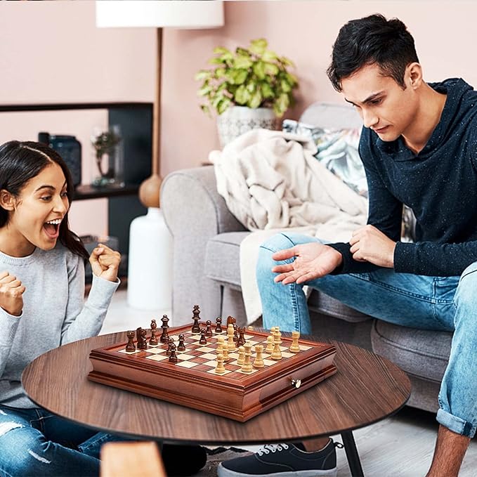 - Latest Magnetic Chess Set - AMEROUS is more focused on the customer's experience, with the new upgraded chess set with 2 built-in storage drawer, allowing you to store your pieces more cleverly and conveniently when you use it, easy to access and not easy to lose, more professional and practical, enjoy the fun of chess