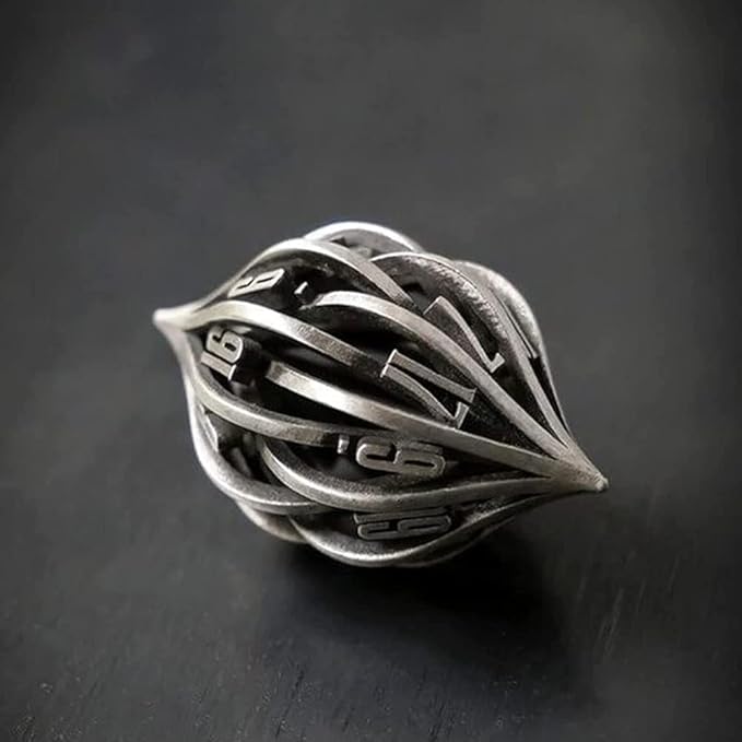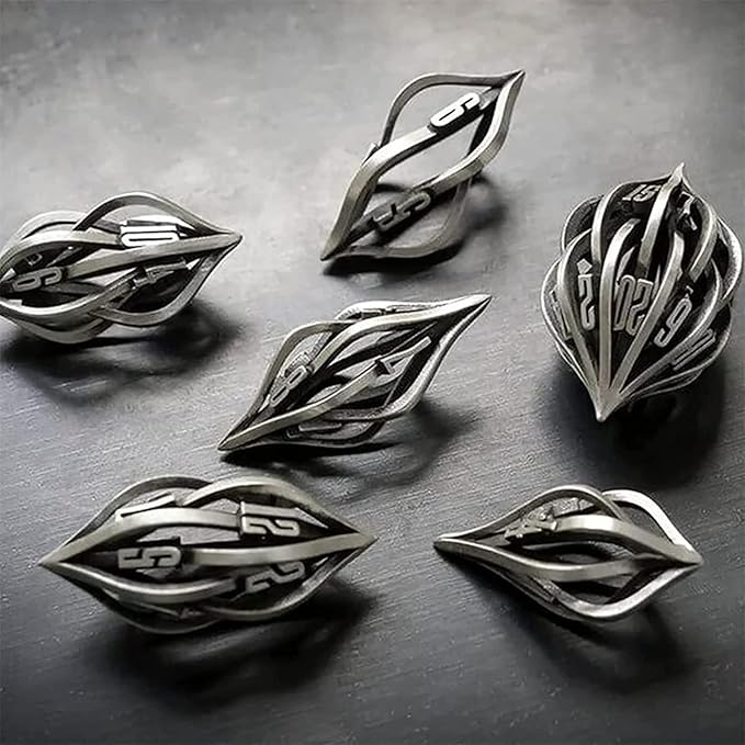 Thyggzjbs The Arcanum Dice Set for Table Games,3D Printed Carved Metal Hollow Polyhedral DND RPG MTG Game Set,Creative Craft Decoration,dice Families and Friend (Ancient silver)