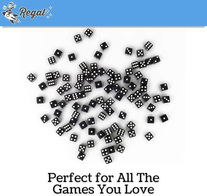 Regal Games Dice Set 6 Sided - Playing Black 16mm - Square Dice for Classroom or Family Game Night - 1000 Dice