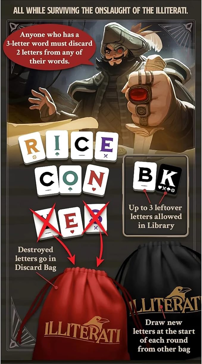 - COOPERATIVE SURVIVAL WORD GAME: Illiterati is a rare blend of skill and creativity where you'll need everyone to play to their strengths!