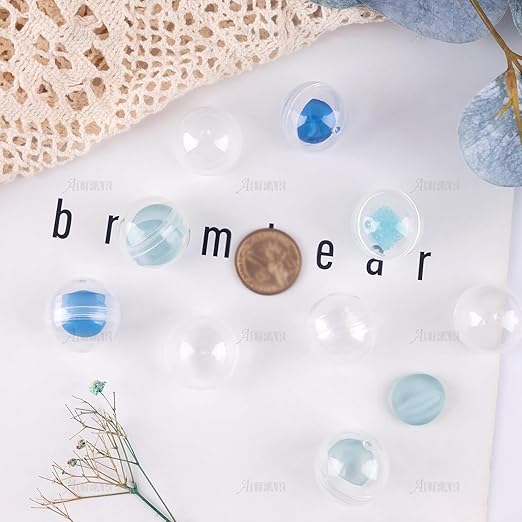 AUEAR, 50 Pack Translucent Small Round Capsules 1.1 Inch Vending Machine Empty Plastic Gumball Containers for Party Favor Prize