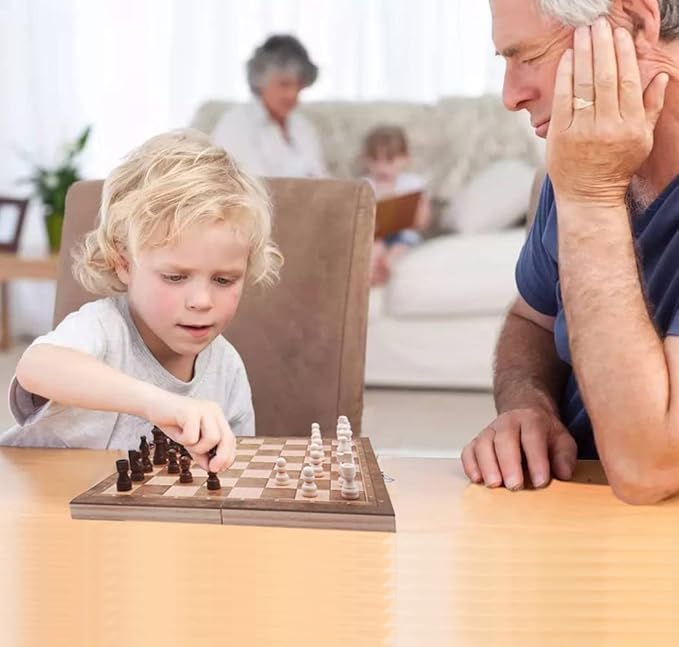 Chess Set,Folding Storage Wooden Chess Board Sets,3 in 1 Chess Board Game for Adults and Kids (Chess,Backgammon,Checkers),Exquisite Wooden Chess Set
