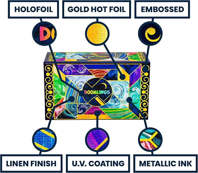 - CONTENTS: The Doomlings Base Game contains 167 unique cards and one mystery holofoil. No two cards in Doomlings are the same, making the game infinitely replayable!