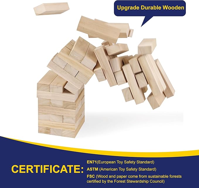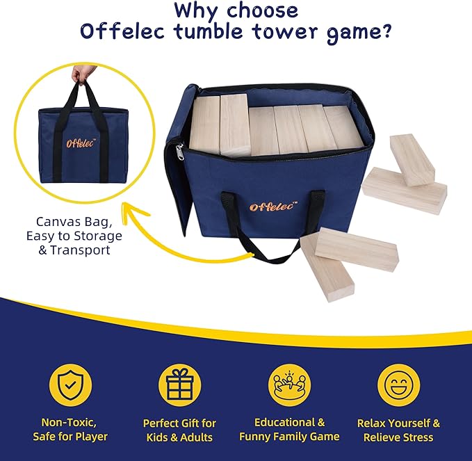 - 【GREAT FOR ALL AGES】Perfect for family game nights, group parties, and outdoor fun - a gift that spans the age gap. The tumbling timber is ideal for party games, family games, outdoor games, garden games, picnics, travel, camping, school classroom, bar, office fun, and the best gift for children, friends.