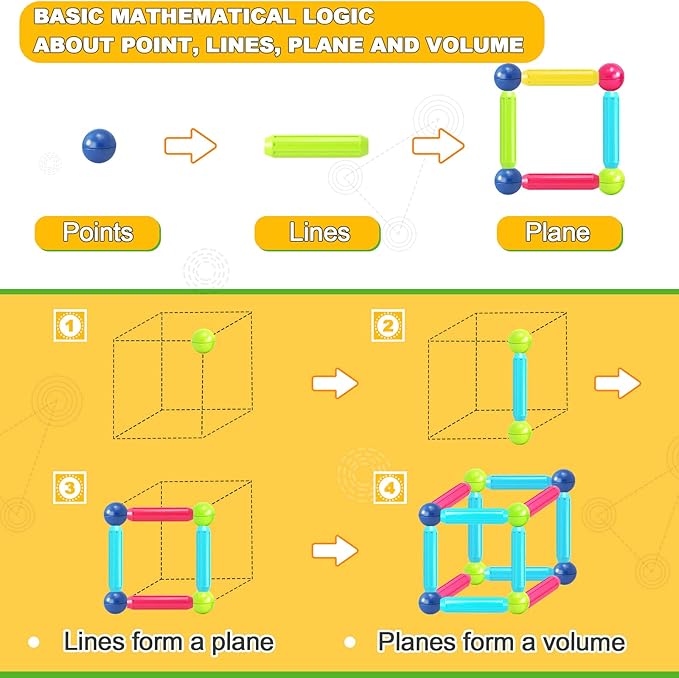 - ๐ใMAGNETIC TOYS FOR POINT & LINE TO PLANEใLooivo magnetic toy set consists of Balls and sticks is the same as the points and lines in geometry. Compared with other magnet toys, it is easier for beginners to understand 2D to 3D. And the magnetic combination of "click" together is easier for children to build and reduce learning anxiety. Highly recommended for toddlers and over 3 years old boys girls.