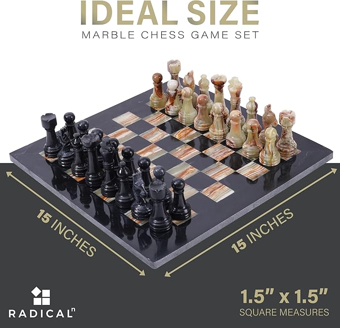 Radicaln Marble Chess Set 15 Inches Black & Multi Green Handmade Chess Game - 1 Chess Board & 32 Chess Pieces - 2 Player Chess Sets for Adults - Board Game