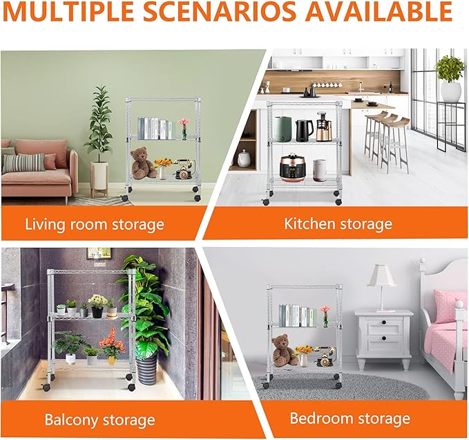 - ✔ [Space saving] Three layers of shelves with wheels can easily help you create a clean kitchen or balcony. The metal storage rack between each layer can be adjusted. The storage rack can be used in a small space, and your condiments, snacks or potted plants can be sorted out.