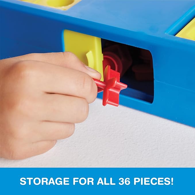 - Includes game base, 36 playing pieces in unique shapes (18 red & 18 green)