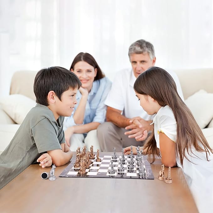 - ๐SUPERIOR QUALIRY โ In order to make our chess sets for adults as safe, smooth, sturdy, wear-resistant and as luxurious as possible we use only the finest quality resin material for chess pieces and premium card stock for board, making it durable enough to keep you entertained for longer without losing its aesthetic appeal!