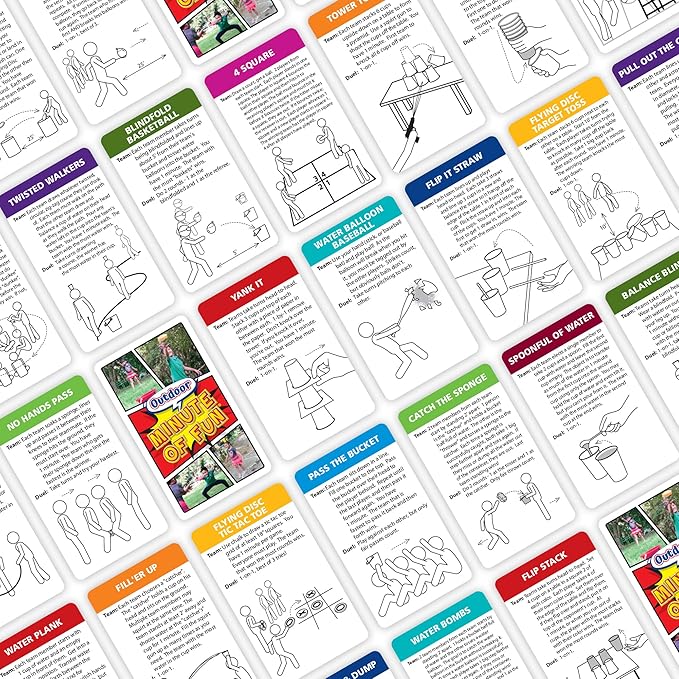 Funwares Minute of Fun Game - Minute to Win It Games for Kids, Adults, Teens, Families, Game Night, Gift for Home, Birthdays, or Travel. 2-12 Players! Outdoor - 272 Challenges
