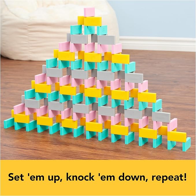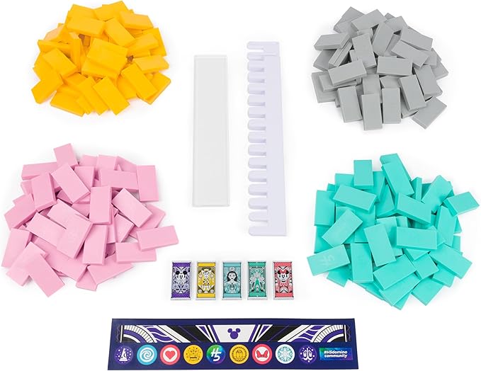 - Includes 200 H5 Dominoes- 50 Teal, 50 Light Pink, 50 Yellow-Orange, 45 Gray, 5 Metallic Disney Dominoes, 1 Label Sheet, 1 Clear Fieldstarter, 1 Structure Template