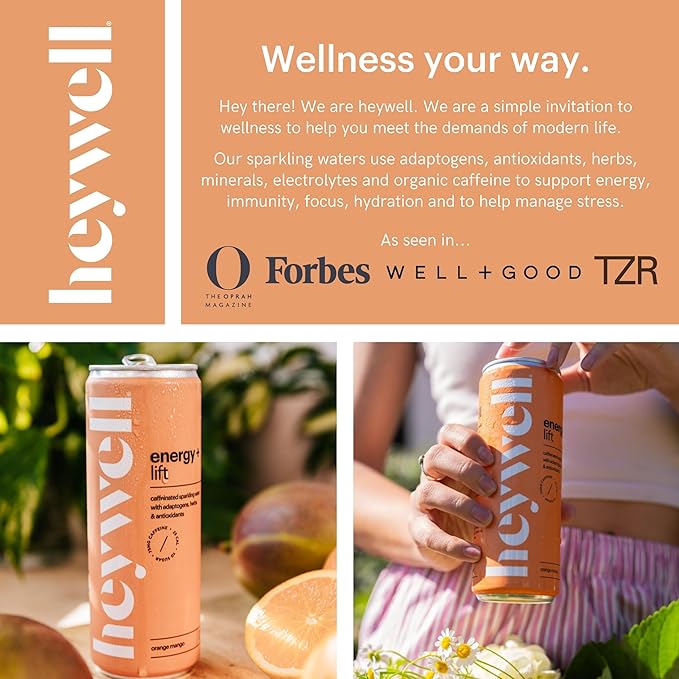 - MADE FOR MODERN LIFE: Heywell is made to help brighten your mood and give you energy. Heywell is perfect for when you need a boost. Sparkling and a refreshing balance of tart and sweet. Only 25 calories and 2 grams of sugar. Electrolyte drinks made with organic ingredients, Non-GMO, Vegan, Gluten Free, Dairy Free, Adaptogen Drink, and a mocktail non alcoholic beverages.