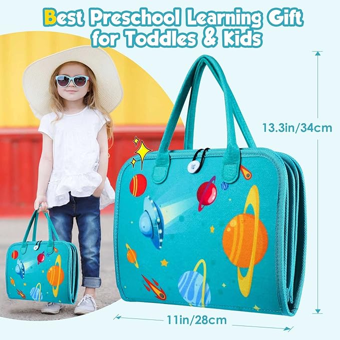 - 【Portable Toddlers Busy Book Toys for Travel】The sensory toddlers busy board toy is made of soft felt cloth and has no hard corners,safe for toddlers. It is very durable and all pieces are securely fixed. Its light and compact design is convenient for you to carry around, keep your kids playing and keeping quiet in the game or learning. a great choice for travel toy and toddler activities.