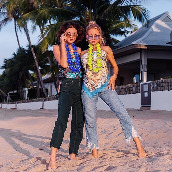 - 【HAWAIIAN LUAU FLOWER LEIS】You will get 50 diffenent kids of flower necklaces, each kind has 3 pieces, 150pcs in total. This Hawaiian tropical lei set is cute and charming, made with artificial flowers and leaves, and you'll love it. Flower shape, cute and pretty, sexy and playful, naughty and innocent, multiple temptation matching, suitable for matching dresses, skirts, bikinis, headbands, bracelets etc. Comfortable and easy to wear, create instantly and show your love for nature.