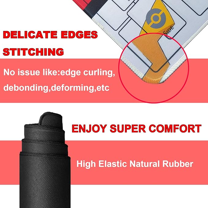 - Has high quality natural rubber bottom grip and high quality cloth at the top. With allocated areafor all your card placements our mat is the perfect accompaniment for any Trainer.This playmat also can be used as keyboard pad mouse pad work mat and card mat.