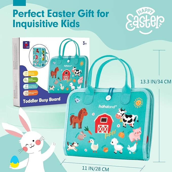 hahaland Busy Board for Toddlers Girls Montessori Toys for 3+ Year Old Farm Animals Preschool Learning Activities Toddler Travel Toys for 3+