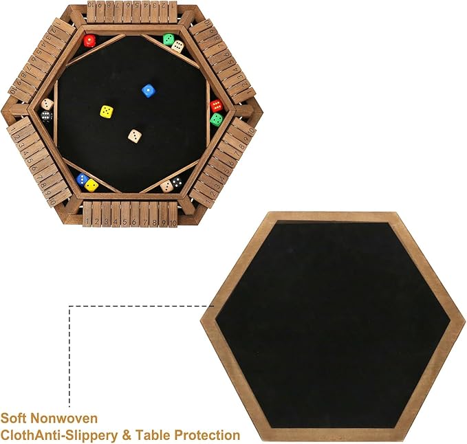 - Sturdy & Long-Lasting -- This wooden shut the box game is made of premium pine wood and quality noise dampening felt, so it should last you for a long time. And it also has a non-slip, anti-friction, and table protection cloth at the bottom of the shut-the-box board, which protects the board and your table while giving you a better gaming experience. You can rest assured you’re purchasing high-quality travel games that are built to last.