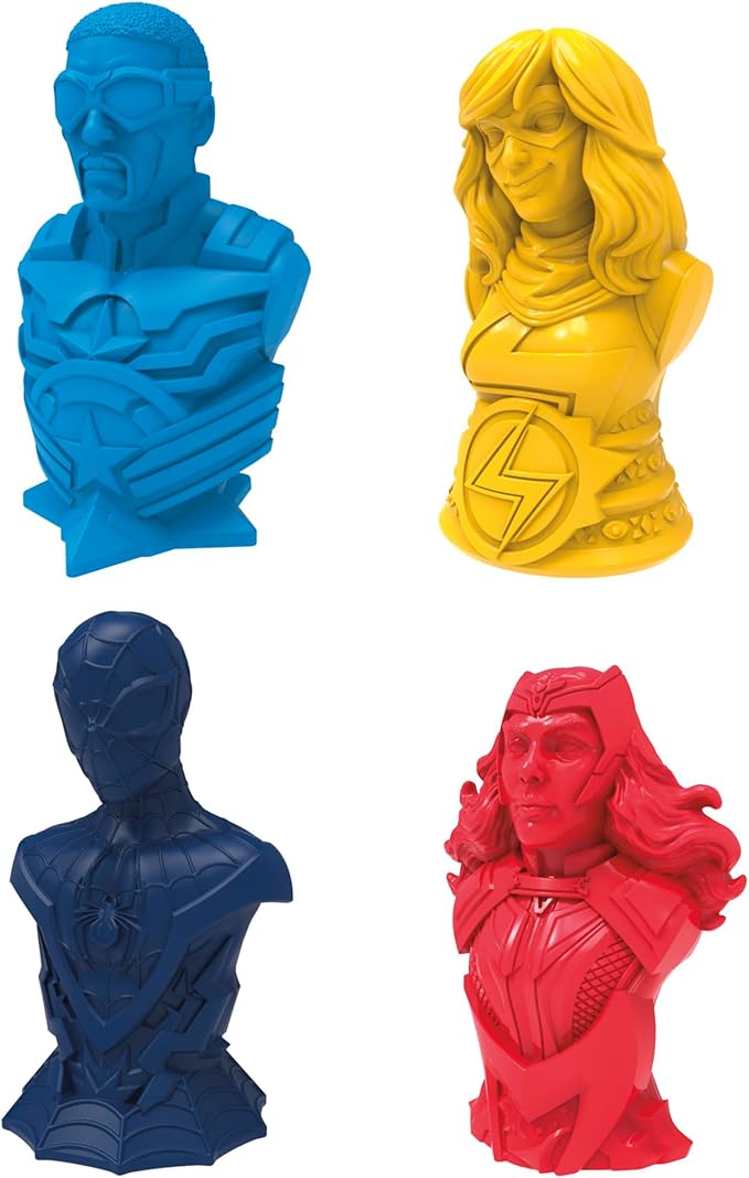 - CHOOSE A FAVORITE SUPER HERO: Includes 4 molded plastic character tokens. Play as Captain America, Ms. Marvel, Spider-Man (Miles Morales), or Wanda Maximoff. Each has a unique power to lend players an edge