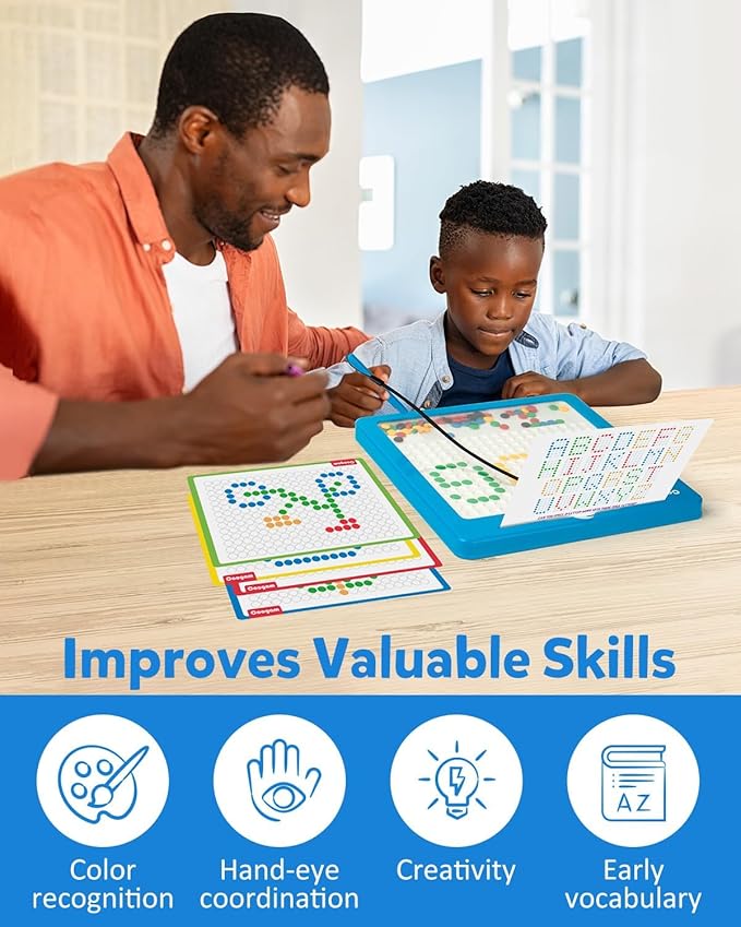 - Fun and Inspiring Drawing Board: Coogam magnetic drawing board contains 106 beans in 5 different colors that can be moved freely around the board with the magnetic pen. There are 10 double sided illustration cards to show Kids how to place these beans and inspire your little one to create their own patterns!
