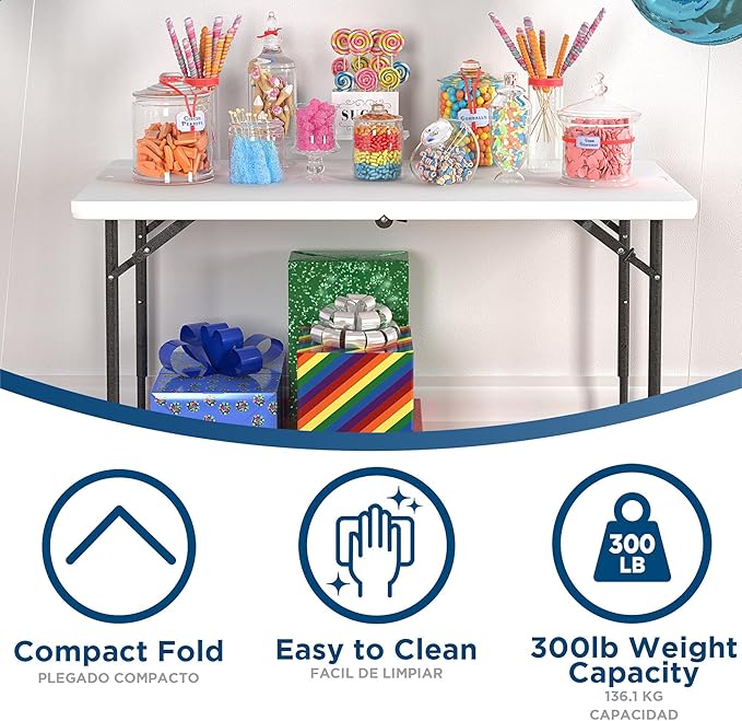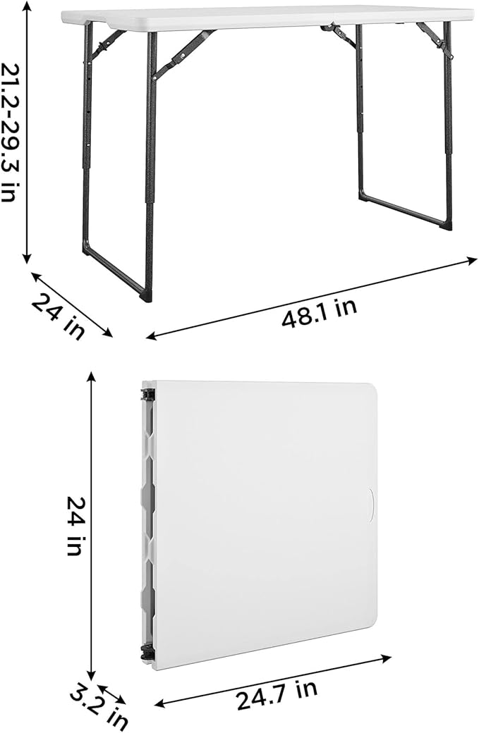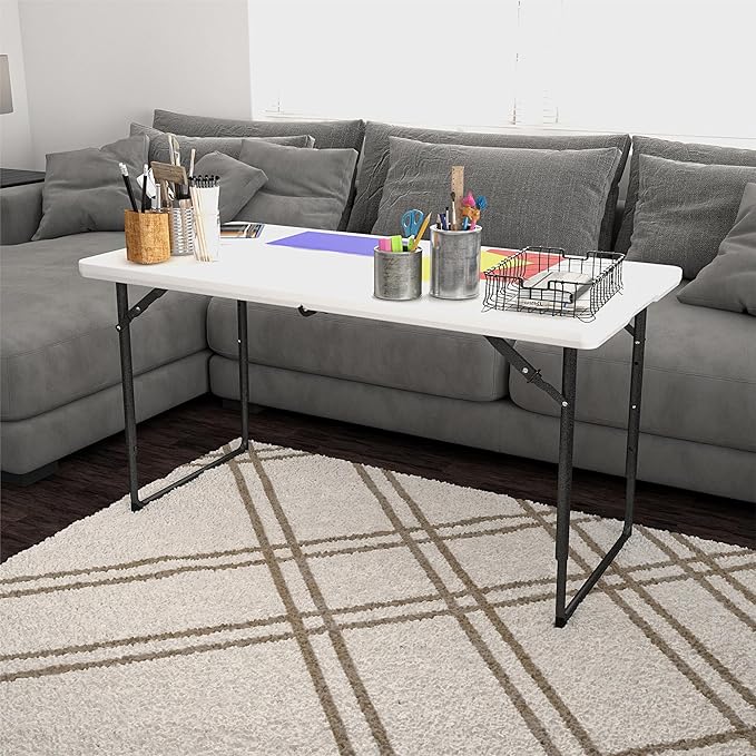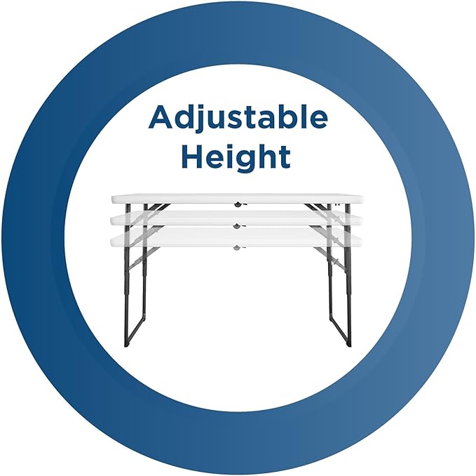 COSCO 4 ft. Centerfold Blow Mold Utility Table, Adjustable Height, White
