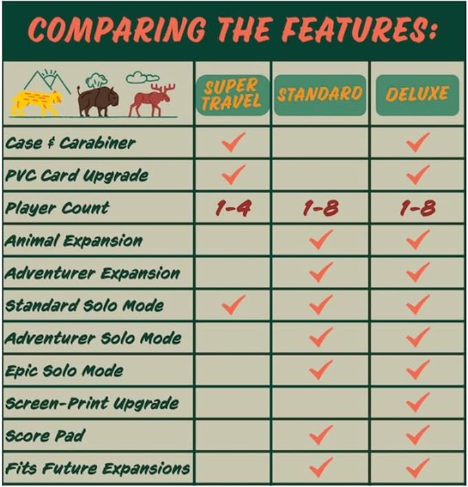 • LOADS OF GAMEPLAY CONTENT: Includes up to 2 thrilling expansions and up to 3 addicting solo modes with enough challenges to explore for dozens upon dozens of plays. The Animal Expansion adds another layer of strategy to the standard trail blazing. The Adventurer Expansion introduces an entirely unique mode where players race to stay ahead of traveling hikers, bikers, and kayakers.