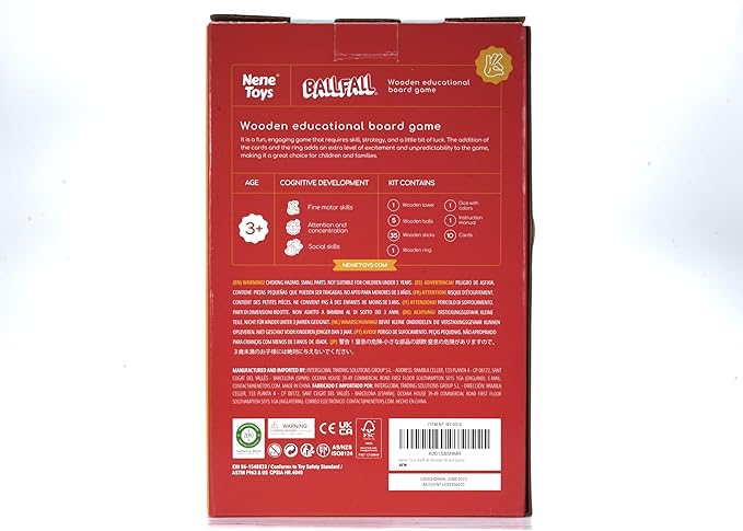Nene Toys BALLFALL Jumbo โ Montessori Wooden Board Game for Kids 3 4 5 6 Years โ Colorful Sticks, Dice & Cards โ Fine Motor Skills Toy, Math & Counting Game โ Educational Gift for Boys Girls Ages 3-9