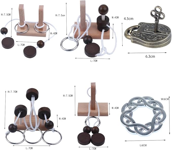 Brain Teaser Puzzle 3D Unlock Interlock Assorted Wooden and Metal ,IQ Logic Training Family Game Party Favor Coffee Table Time Unlock Interlock Mind Puzzles Box(6Pcs)