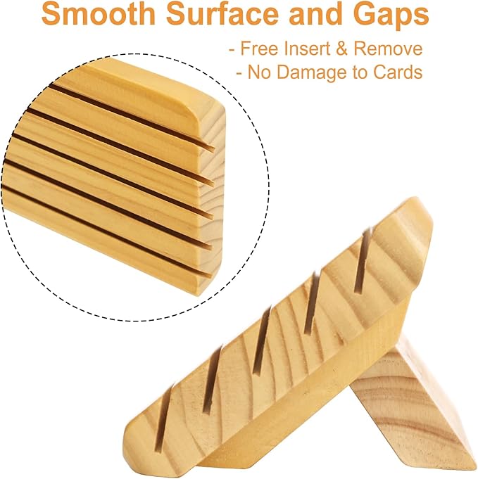 - [Made of Superior Pine with Felt Bottom] These card holder for playing cards is made of premium solid pine, which is sturdy, well-constructed and feels smooth. There is soft nonwoven cloth at the bottom of the wooden playing cards holder which can protect your table and keep the canasta card holder from easy removal.