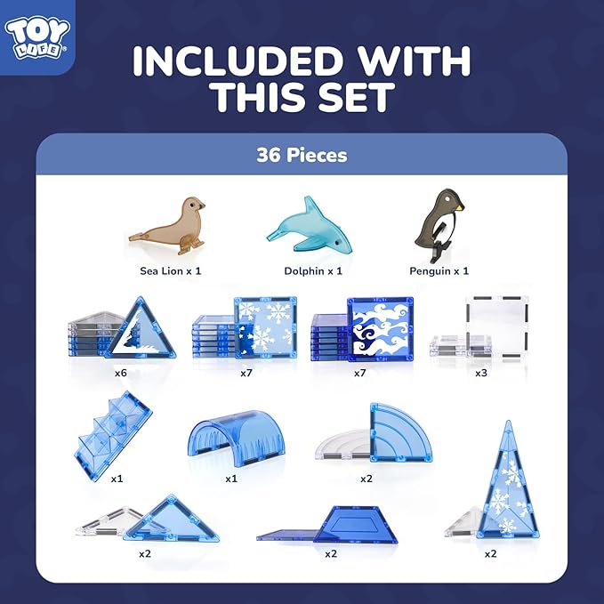 - Discover the Wonders of the Arctic: Immerse your child in the world of Arctic animals with our 38-piece magnetic tiles set. Watch as they embark on a learning adventure that combines fun playtime with educational exploration with this toy magnets.