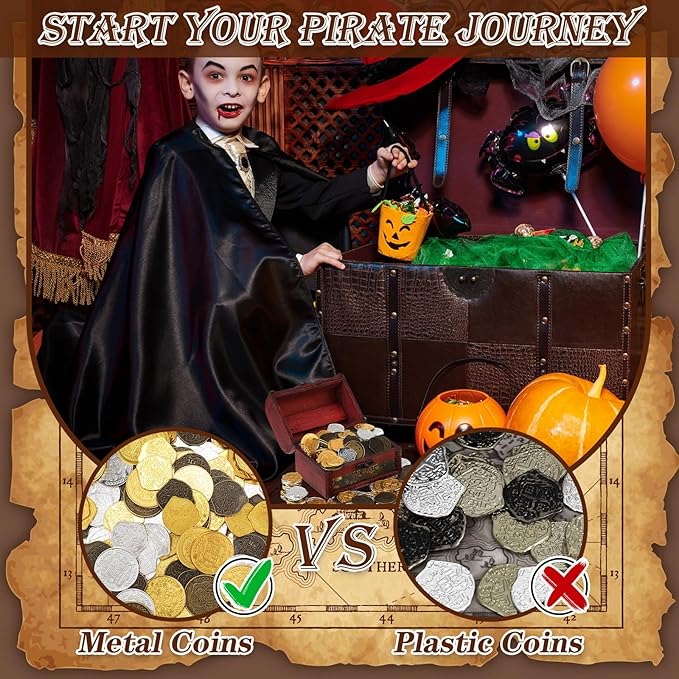 - Quality and Reliable Material: made of quality zinc alloy material, these fake coins have the appearance, feeling and sound of ancient real metal pirate coins, stable and lustrous, not easy to lose luster and discolor, serving you for a long time