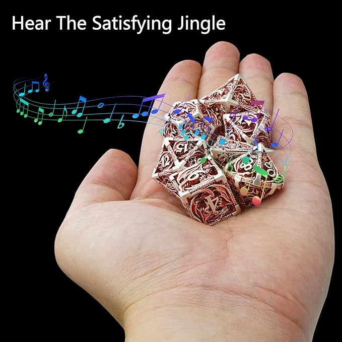 - 1. 【Unique design】New and unique metal diceThe design of this dice is inspired by the ancient dragon, and the exquisite dragon pattern makes it add an ancient and mysterious feeling to the game, so that GM can better show it in Dungeons and Dragon.