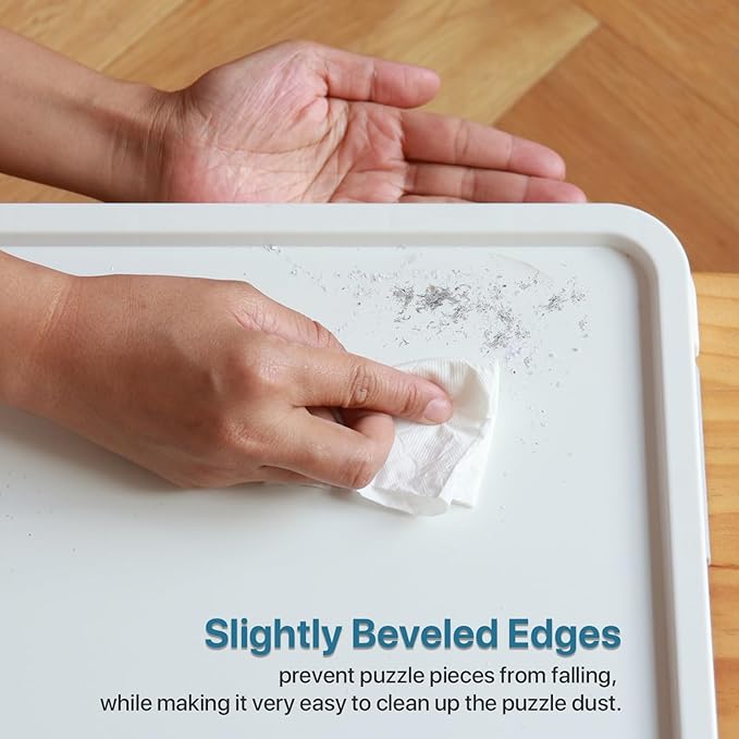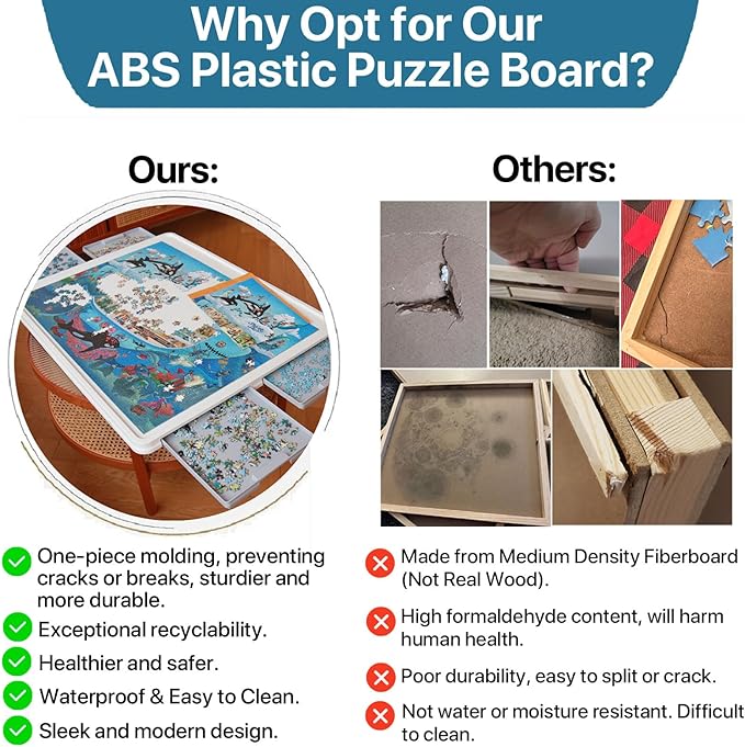 - 【Easy to Clean】Wooden puzzle boards are not waterproof, are susceptible to moisture, and can even cause deformation over time. Cleaning is a hassle. In contrast, the plastic surface is waterproof, which makes it very convenient for cleaning puzzle dust and other dirt!
