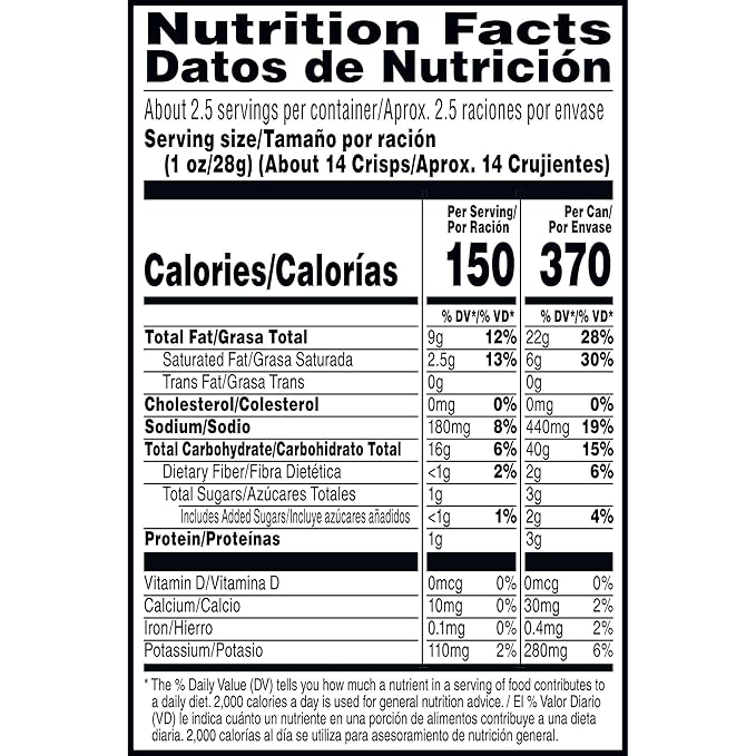 - Includes 12, 2.5oz cans of ready-to-eat potato crisps; Packaged for freshness and great taste