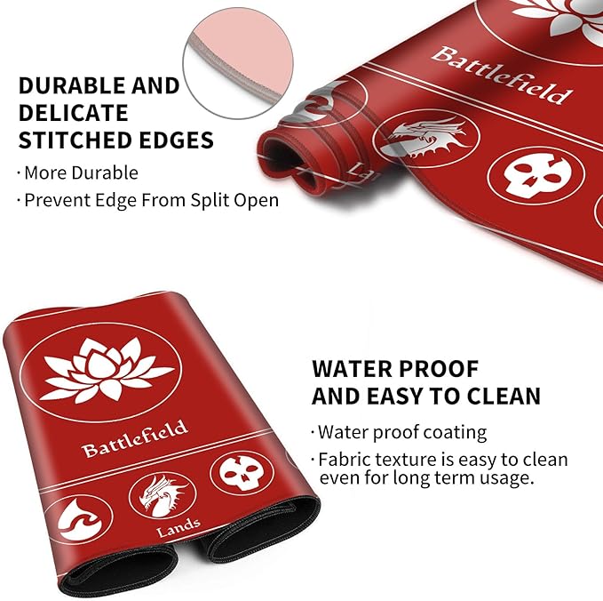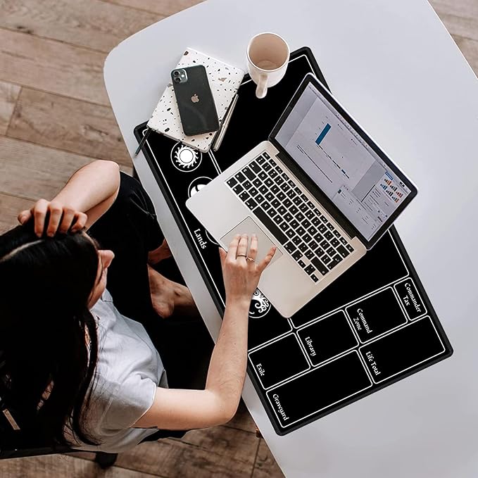 - 【Organized Gameplay Field】This 14x24 inch gaming mat has built-in playzones to spread out your cards and organize commander decks, intended for Magic the Gathering and trading card games. Your nicely made game mat has a card-friendly polyester top and a non-slip rubber bottom. Draw, flip, and tap cards fast on a stable surface, even during the most intense game sessions.