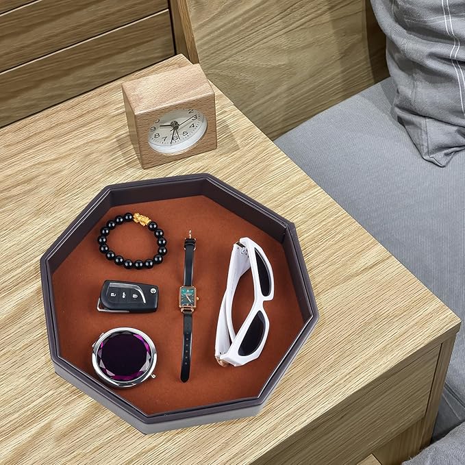 Dice Rolling Tray, Felt Lined PU Leather Octagon Dice Tray for Dungeon Crawler Games, Coffee