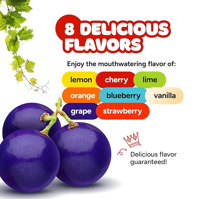 - BURST OF FLAVORS: Our bubble gum balls offer 7 delicious tastes - Cherry, Orange, Lemon, Lime, Blueberry, Strawberry, Vanilla, and Grape - all in one pack. These brightly colored gum balls are 1 Inch (25 mm) in size, making them the perfect addition to any candy buffet or as a stand-alone treat