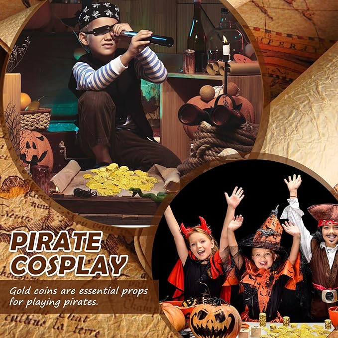 - Ideal Party Gifts: the pretend gold coins are very suitable for pirate themd parties, Halloween, birthdays, Children's Day, treasure hunt, carnival, holidays, and other events, they can be filled in pinata, as well as game tokens, stage performance props, party decorations, treasure box jewlery,kids board games and so on