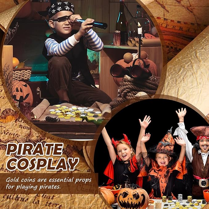 - Ideal Party Gifts: the pretend coins are very suitable for pirate themed parties, Halloween, birthdays, Children's Day, treasure hunt, carnival, holidays, and other events, they can be filled in pinata, as well as game tokens, stage performance props, party decorations, treasure box jewelry and so on