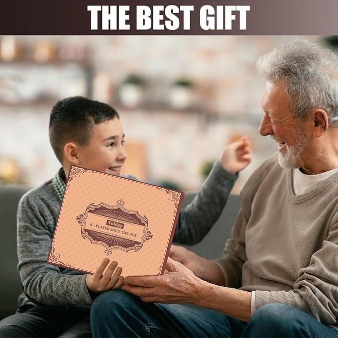 - 4 Player Board Game:This professional wooden shut the box game is a classic dice game with simple gameplay and can be played by up to 4 players at the same time, providing endless fun. Comes with 12 dice (2 dice per person + 4 spare dice), a dice storage bag, an instruction manual and a gift box, making it one of the most popular math games.