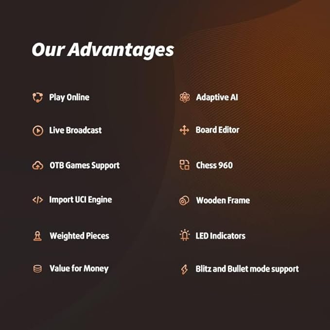 - 【Ideal Chess Gift】: Chessnut Air+ Electronic Chess Set is the best gift you can give to any chess enthusiast for new & seasoned players .The full wooden chess set will surely win over everyone! Set includes an Chessboard ,embedded LED lights,34 wooden pieces with sensor chips (2 extra queens included),USB-C charging cable,Quick start guide.