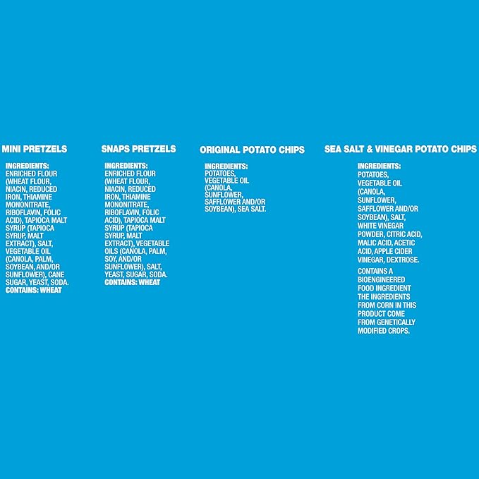 - Includes 6 Snyder's of hanover mini pretzels and 6 Snyder's of hanover snaps pretzels
