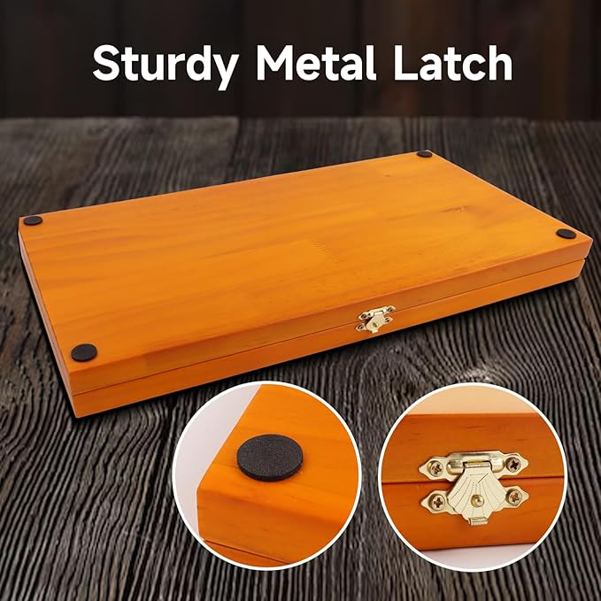 - Material & Size: The Mancala game board is made of quality pine wood; open dimensions are 16.5" x 16" x 0.75"; the hinged board has a lock for securely holding all stones inside and folds for convenient storage and travel