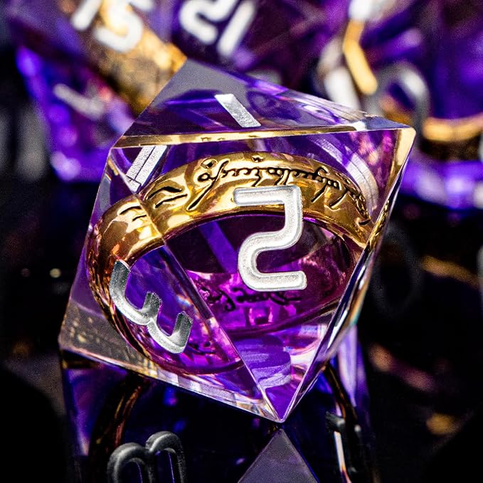 Magic Golden Ring DND Dice Set with Box, Purple Sharp Edge Handmade Lord D and D Polyhedral Dice for use with D&D Tabletop Games RPG, D20 D12 D10 D8 D6 D4