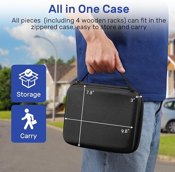 - Play Anytime and Anywhere: All pieces (including 4 wooden racks) can fit in the big zippered case, easily stored and carried out, perfect for travel or camping.