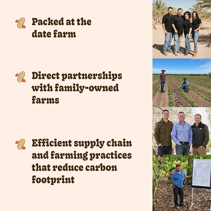 - FARM TO TABLE: Our organic Medjool dates are grown, harvested, pitted, and filled with natural peanut butter and cacao from our sustainable family-owned date farm.