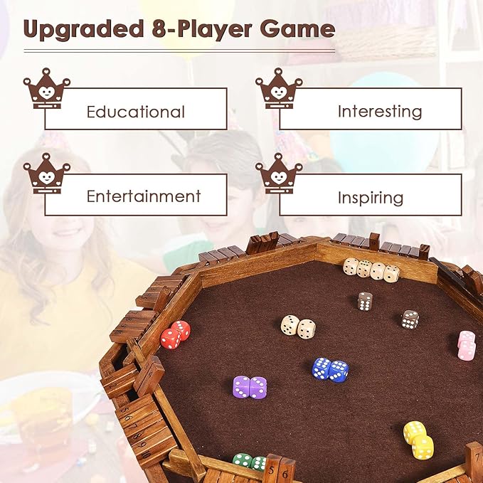 - 8 PLAYERS DICE GAME Compared to other shut the box dice games, upgraded 8 players version adapts to multiplayer games. Come with easy-to-understand instructions, shut the box game making it suitable for all skill levels. Whether you're a beginner or a seasoned player, you'll quickly grasp the rules and start having fun