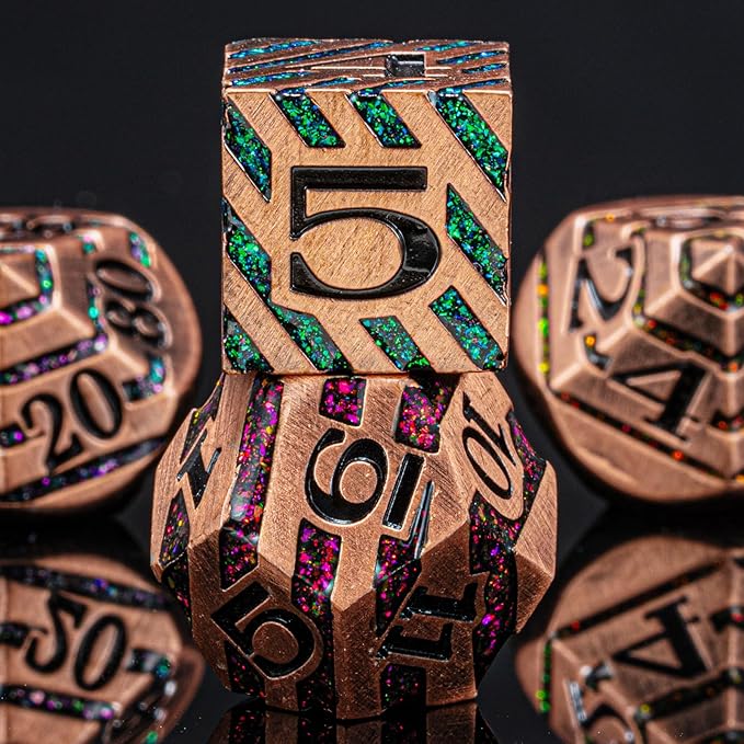 - Excellent Craftsmanship - metal dice Stripes design, the dice is having the cool engraving. All of these elements are carved on the metal dnd dice set with exquisite craftsmanship