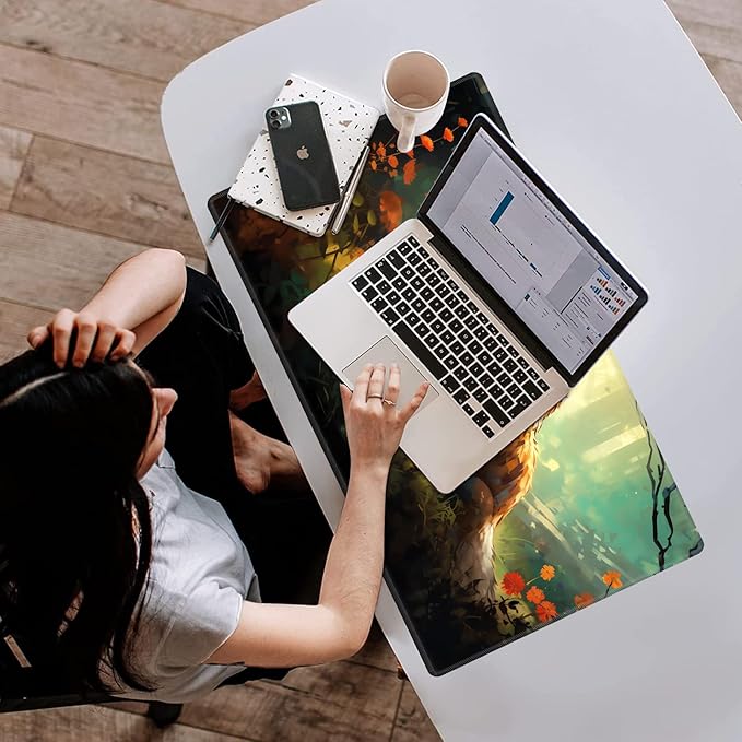 Playmat with Zones for MTG Card Game Playing, 24"x14" Commander Deck Gaming Desk Duel Mat for Beginner, Forest Fox