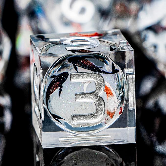 ARUOHHA DND Dice Set Liquid Core Koi Fish Sharp Edged Dragons Dice Compatible with D&D Role Playing Game, RPG Handmade Resin Dungeons Polyhedral D and D Dice Set D20 D12 D10 D8 D6 D4